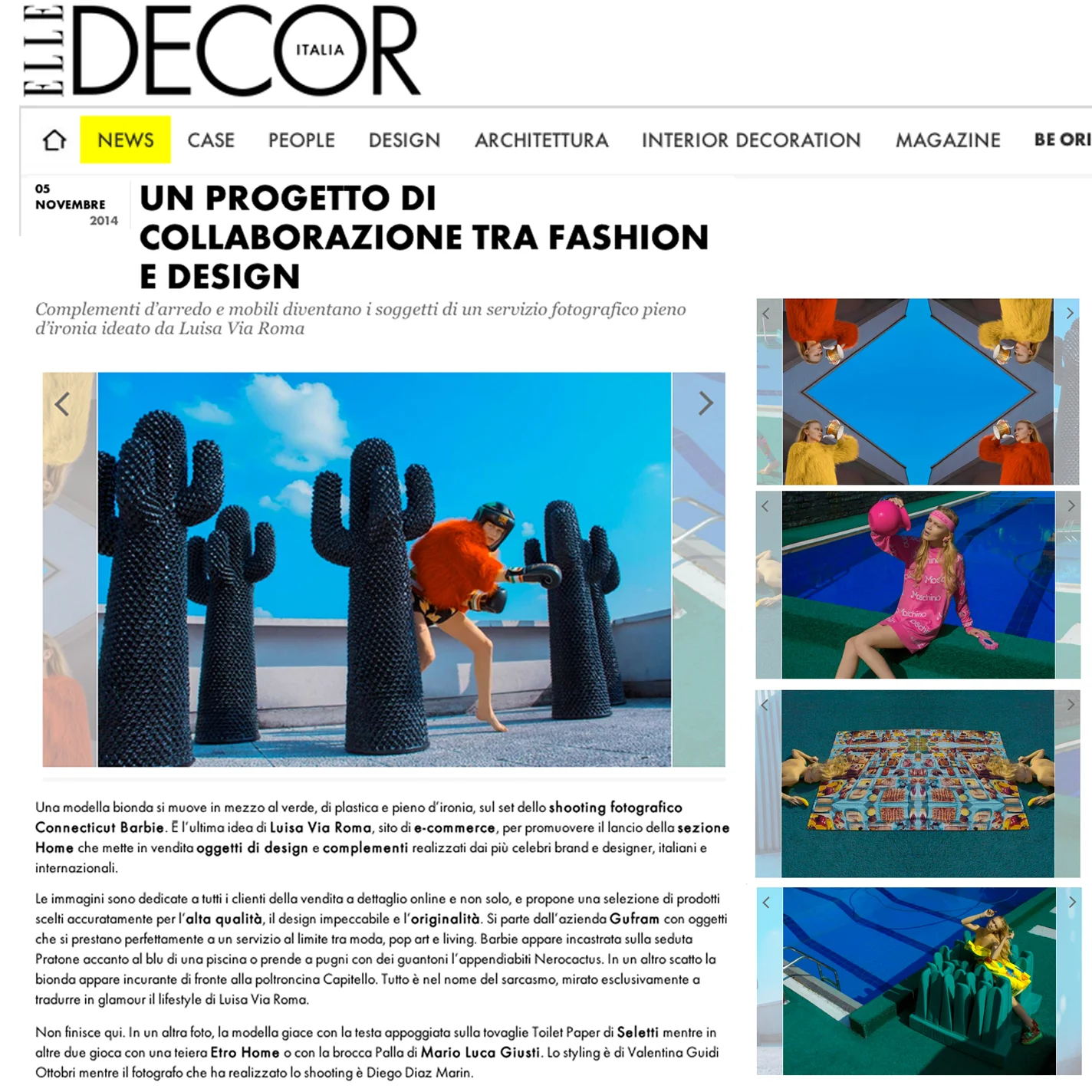 Article about new work by DIEGO DIAZ MARIN on ELLE Italy
